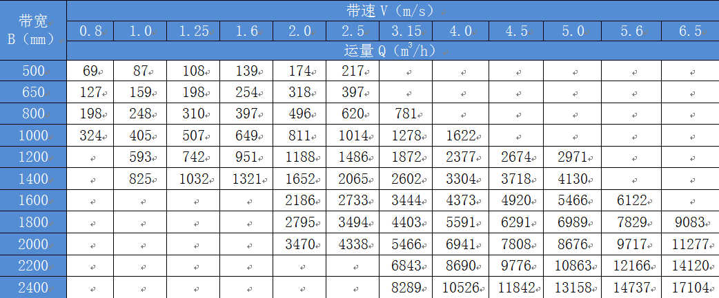 DT II(A)固定帶式輸送機(jī)選型表